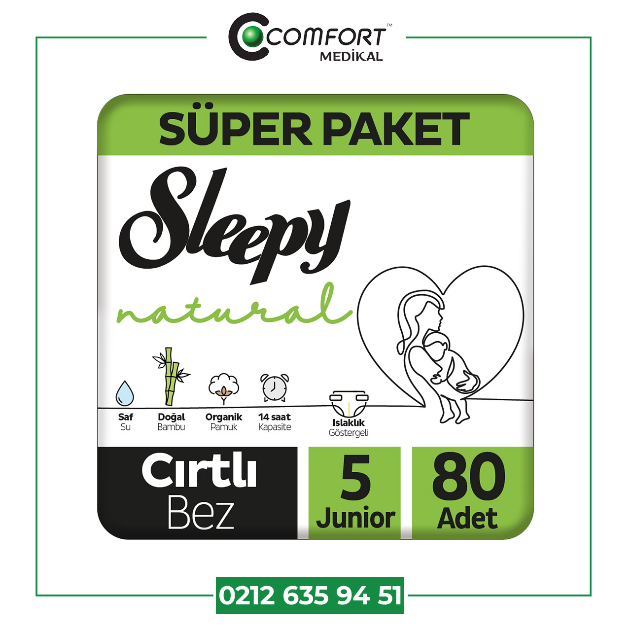 - Hassas ciltlere özel kuruluğu artıran organik pamuk lifleri.